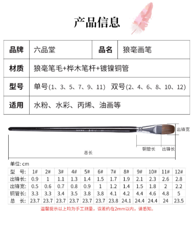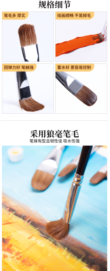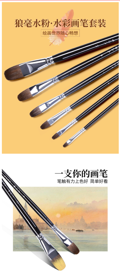 商品名称:六品堂 SFB014 狼毫水粉水彩画笔套装 6只装