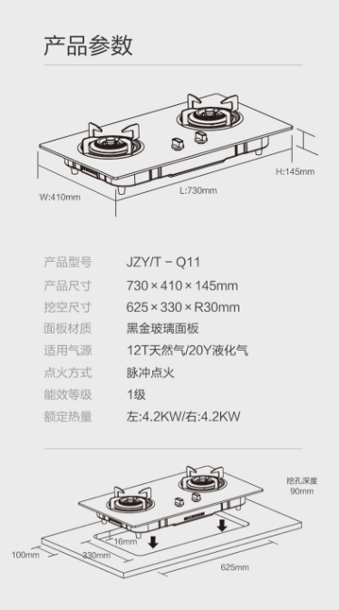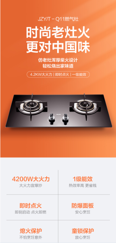 商品名称:奥克斯 AUX JZY-Q11 台嵌两用然气灶 750MM 液化气