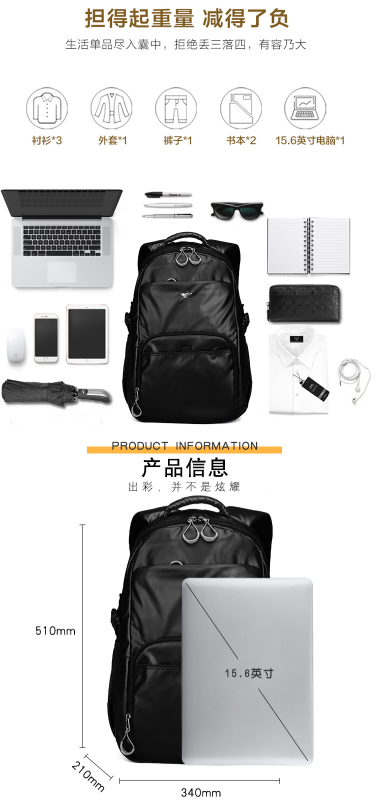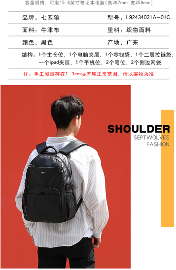 商品名称:七匹狼 SEPTWOLVES L92434021A-01C 电脑包 14英寸 黑色