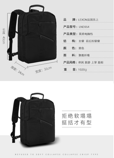 商品名称:乐上 LEXON 双肩背 14/15.6英寸 男 黑色