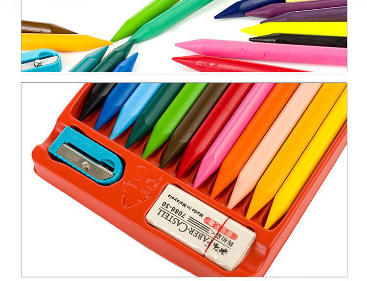 商品名称:辉柏嘉 FABER-CASTELL 可擦蜡笔24色三角形笔杆(赠橡皮擦+笔刨)122624