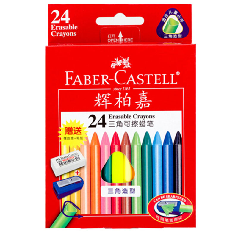 辉柏嘉 FABER-CASTELL 可擦蜡笔24色三角形笔杆(赠橡皮擦+笔刨)122624