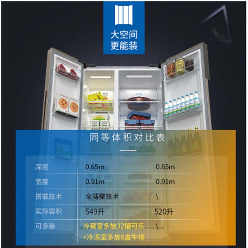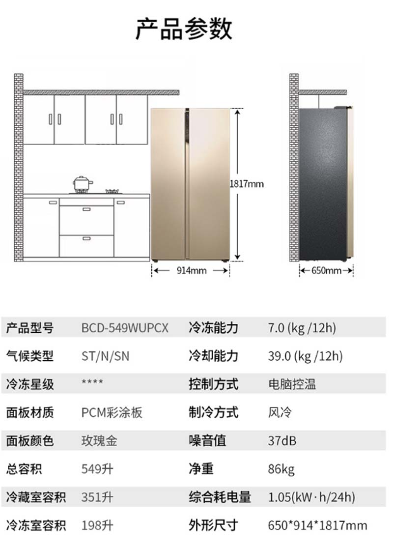 商品名称:美菱 MELING BCD-549WUPCX 549升 变频 电脑控温 冰箱