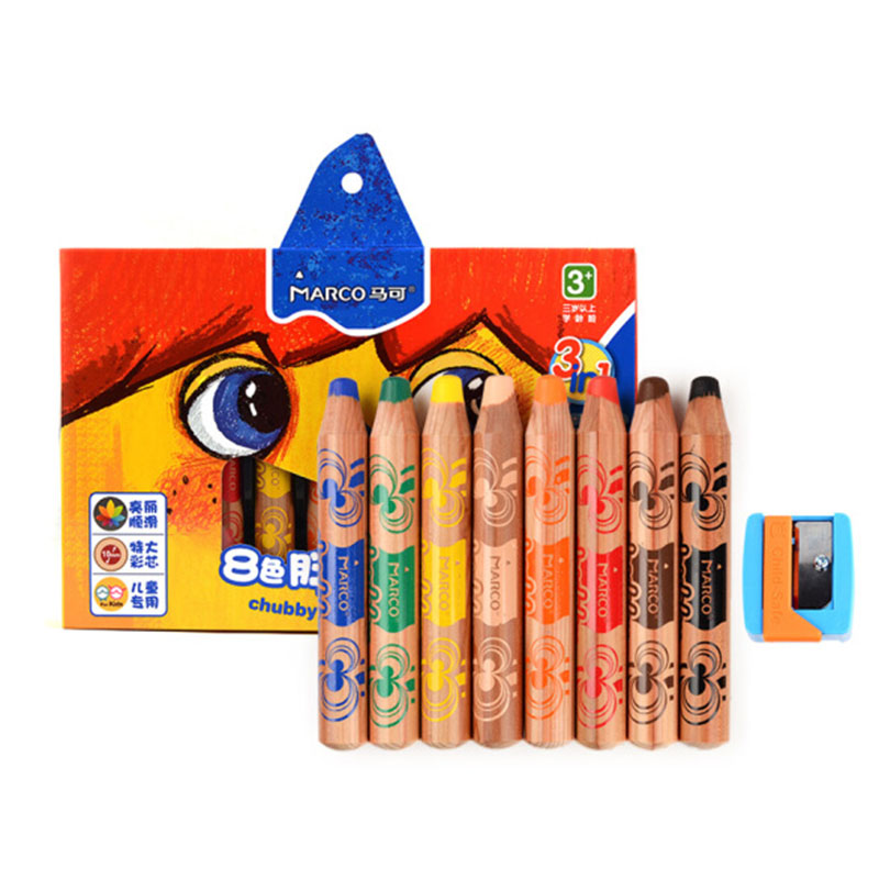 马可 MARCO 1800-8CB胖胖彩8色儿童绘画彩色铅笔固体水彩蜡笔三合一