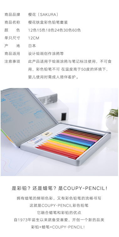 商品名称:樱花 SAKURA 12色塑料蜡笔彩色铅笔套装FY-12(铁盒)【日本进口】