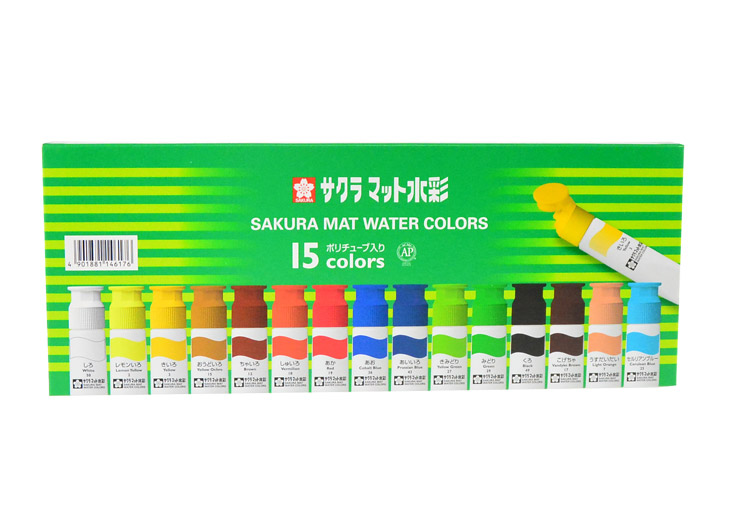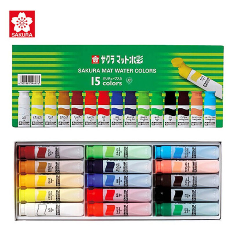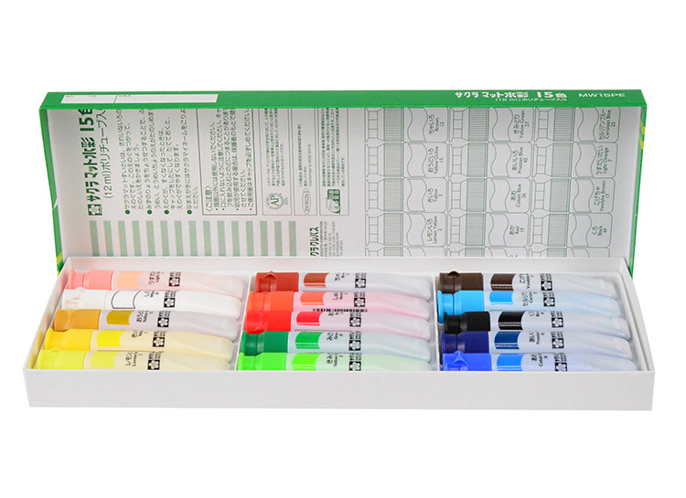 樱花 SAKURA 15色水彩颜料套装MW15PE12ML/支透明水彩颜料专业绘画绿盒【日本进口】