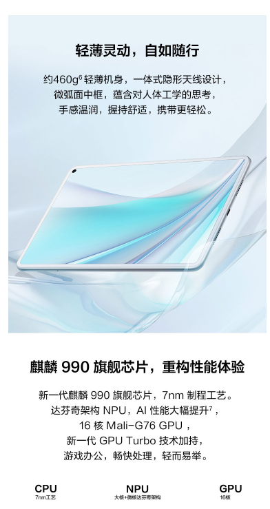 商品名称:华为 HUAWEI MATEPAD PRO (麒麟990/8G/256G/10.8英寸)平板电脑 青山黛 WIFI版