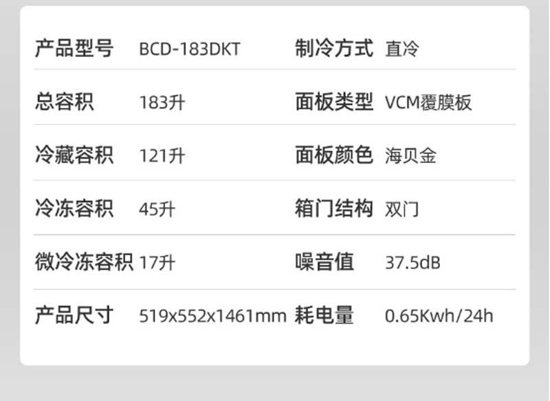 商品名称:新飞 FRESTEC BCD-183DK 冰箱 香槟金色