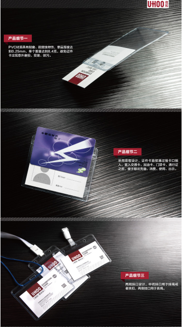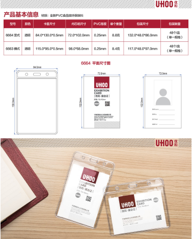 商品名称:优和 UHOO 6663 横式软质PVC证件卡套 48本/盒 高透明