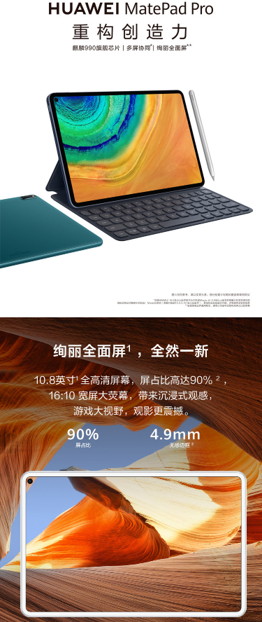 商品名称:华为 HUAWEI MATEPAD PRO (麒麟990/8GB/256GB/10.8英寸) 平板电脑 贝母白 WIFI版