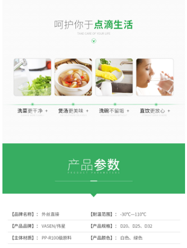 商品名称:伟星 PPR水管配件 外丝直接25/6分×1/2 绿色(1个)