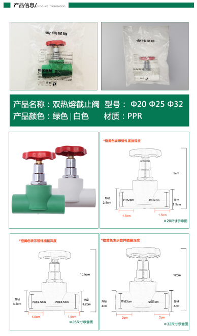 商品名称:伟星 PPR水管配件 截止阀门25/6分 绿色(1个)