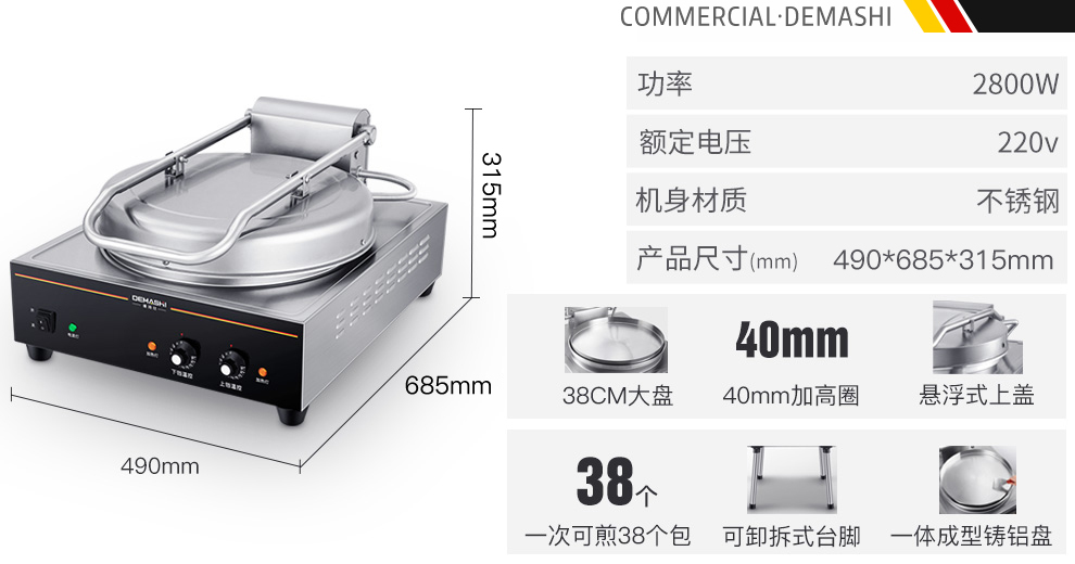 商品名称:德玛仕 DEMASHI EJB45L-2 商用电饼铛 220V电压 立式