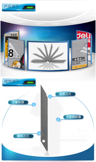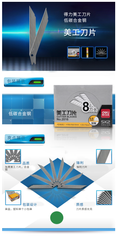 商品名称:得力 DELI 2016 美工刀替换刀片 大号 5盒