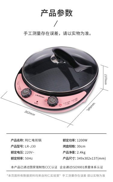 商品名称:利仁 LIVEN 利仁电饼铛家用新款电煎锅加深款加大烙饼煎饼机LR-J30
