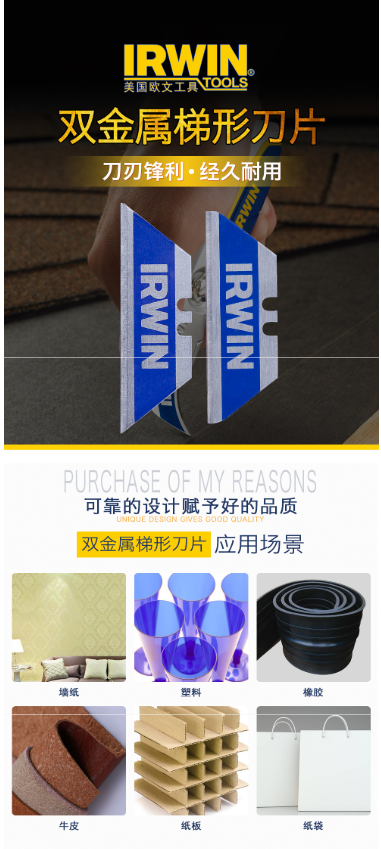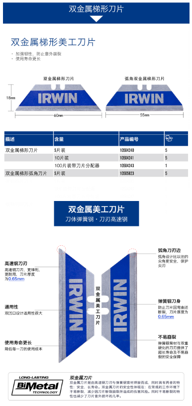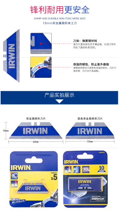 商品名称:欧文 IRWIN 双金属梯形美工刀片 10片装