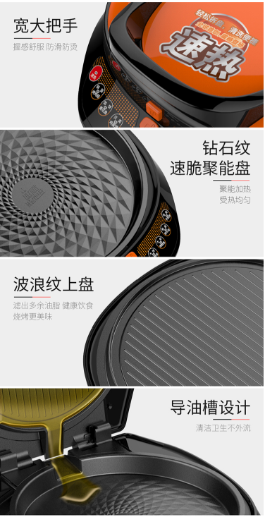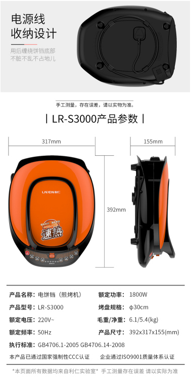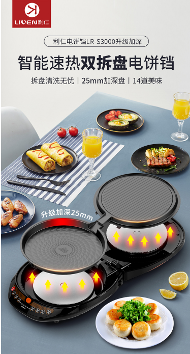 商品名称:利仁 LIVEN 电饼铛家用双面加热可拆洗一键速热煎烤机LR-S3000