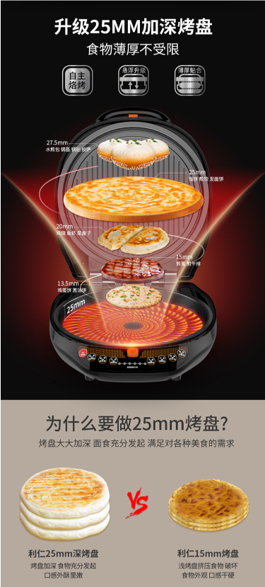 利仁 LIVEN 电饼铛家用双面加热可拆洗一键速热煎烤机LR-S3000