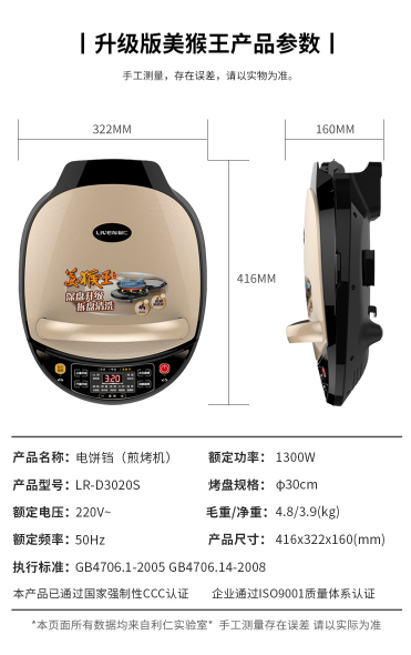 商品名称:利仁 LIVEN LR-D3020S 美猴王 电饼铛 25MM