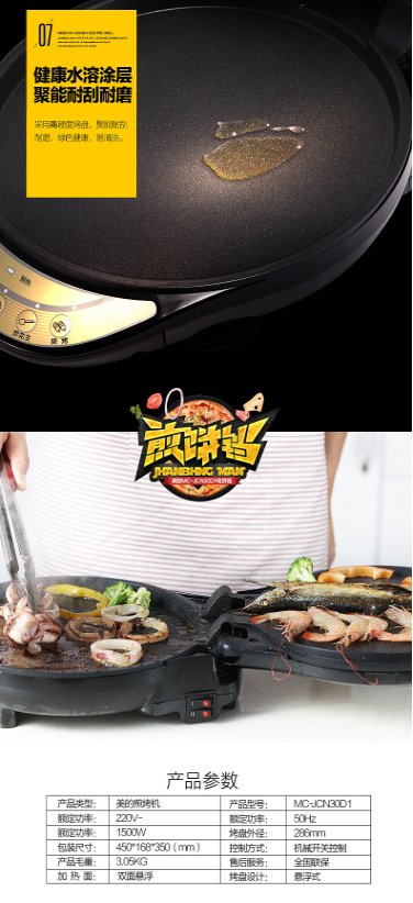 商品名称:美的 MIDEA 电饼铛 WJCN30D 家用电脑板双面加热烙饼煎烤