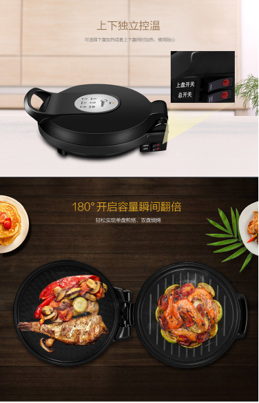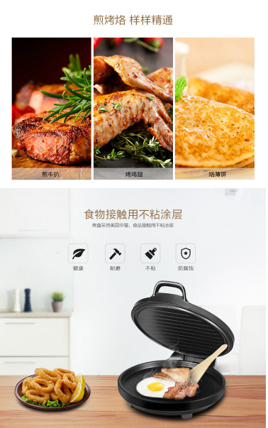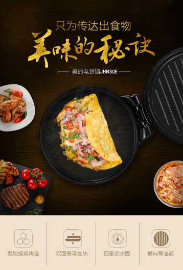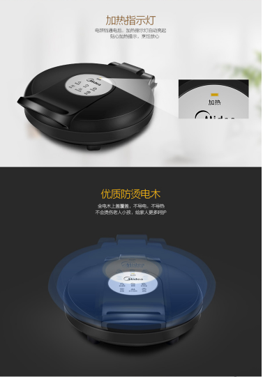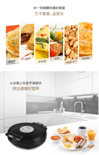商品名称:美的 MIDEA 双面悬浮煎烤机家用电饼铛JHN30E黑色