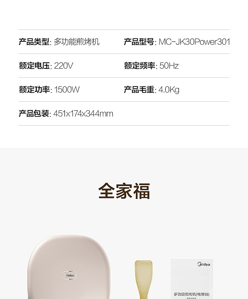 商品名称:美的 MIDEA JK30POWER301 电饼铛