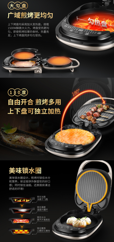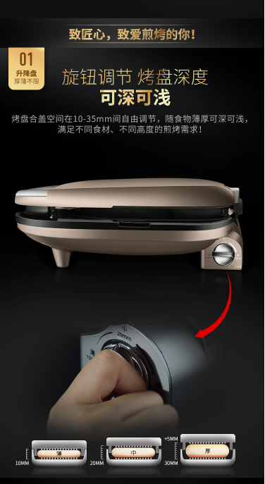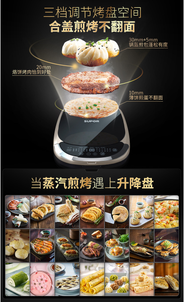 商品名称:苏泊尔 SUPOR JC30RQ801 电饼铛(加深可升降烤盘) 3.5CM