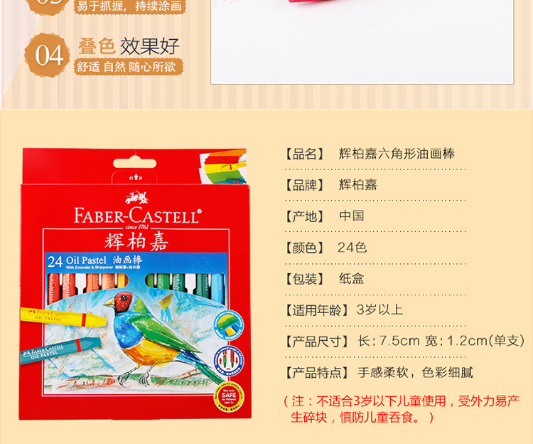 商品名称:辉柏嘉 FABER-CASTELL 油画棒24色六角形填色涂鸦笔绘画笔122724
