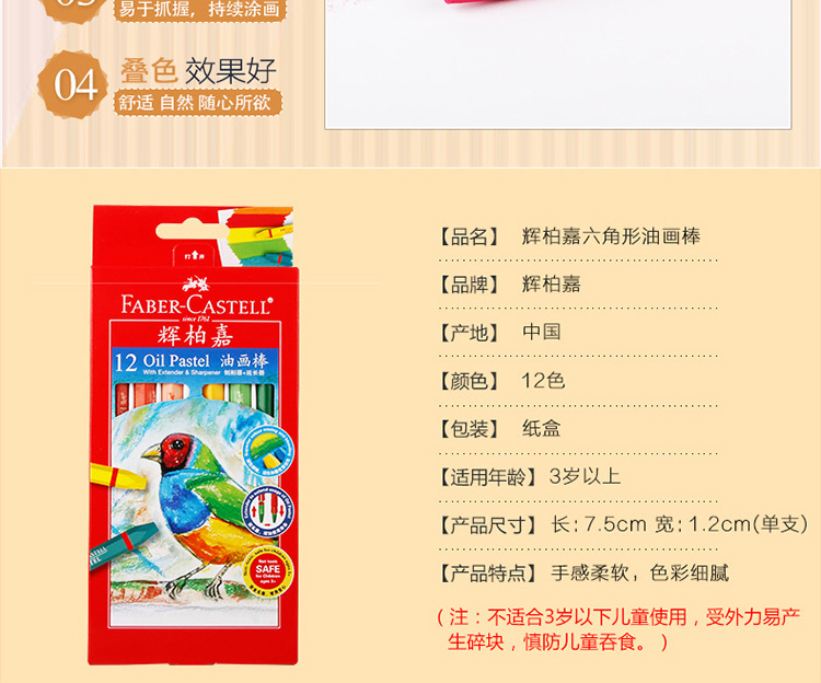 商品名称:辉柏嘉 FABER-CASTELL 油画棒48色六角形填色涂鸦笔绘画笔122748