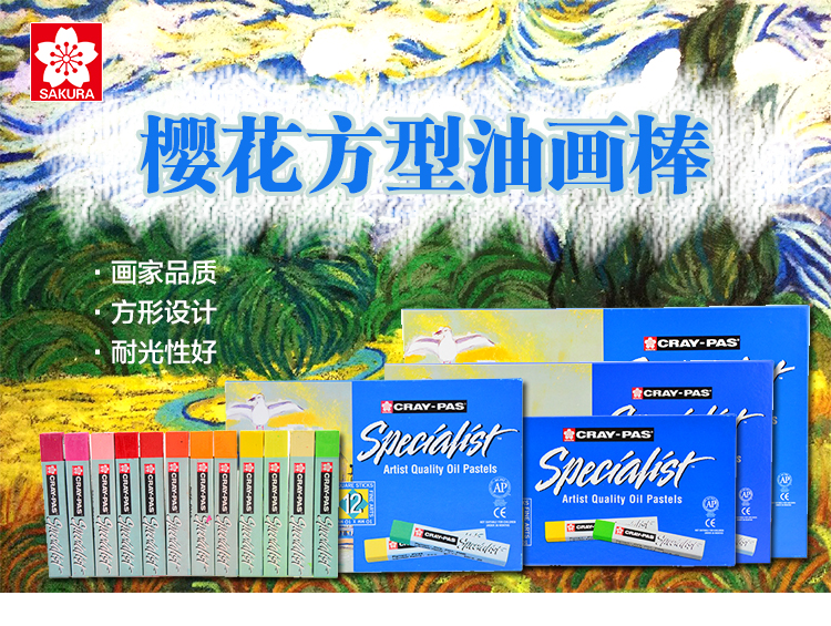 樱花 SAKURA ESP-5050色油画棒套装方形笔杆专业画家用美术软蜡笔