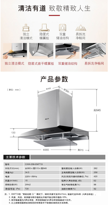 商品名称:方太 FOTILE EM7T.S+JEM7 油烟机