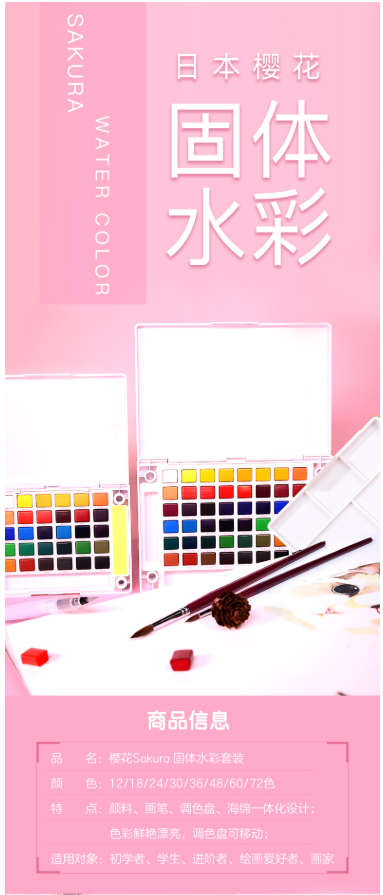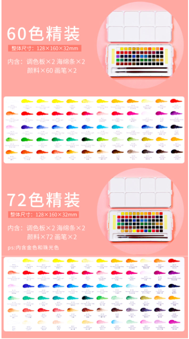 商品名称:樱花 SAKURA 固体水彩60色套装NCW-60C荷兰泰伦斯便携透明水彩写生绘画用品