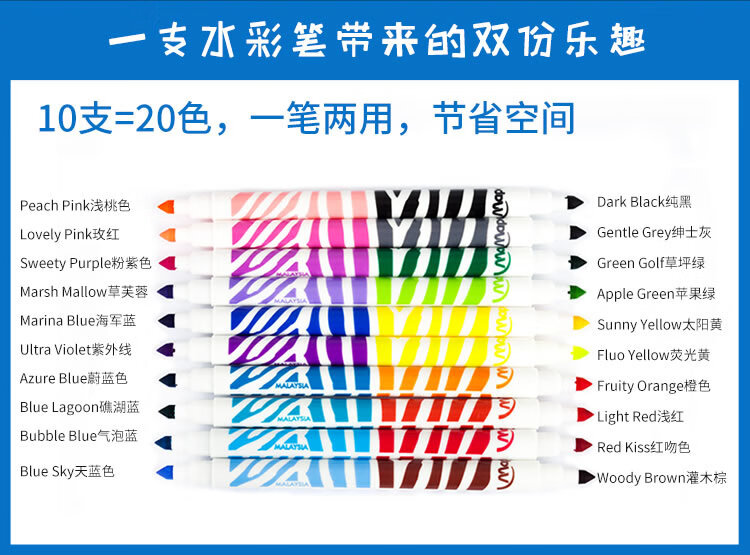 商品名称:马培德 MAPED CH847010 易水洗双头水彩笔 10支装 20色