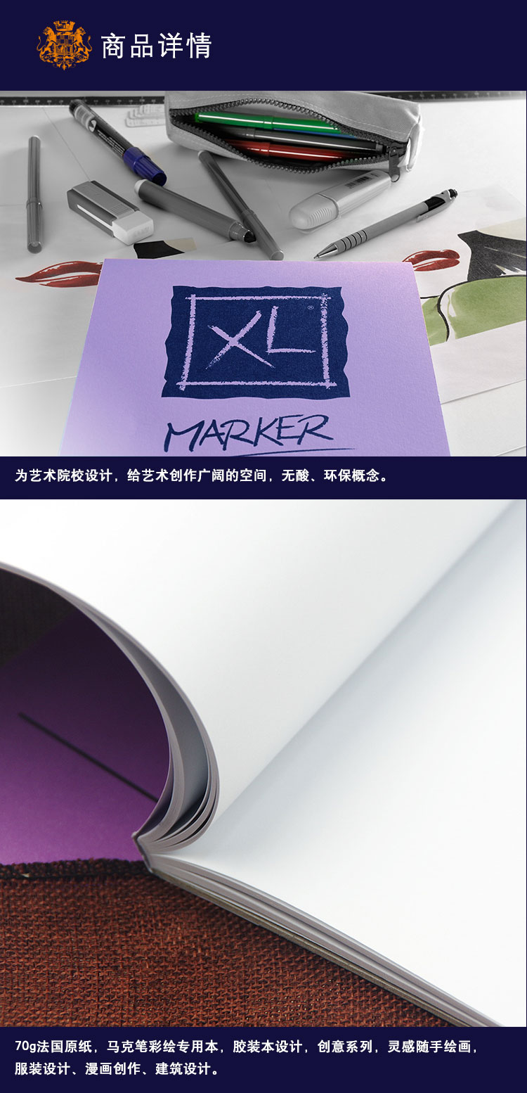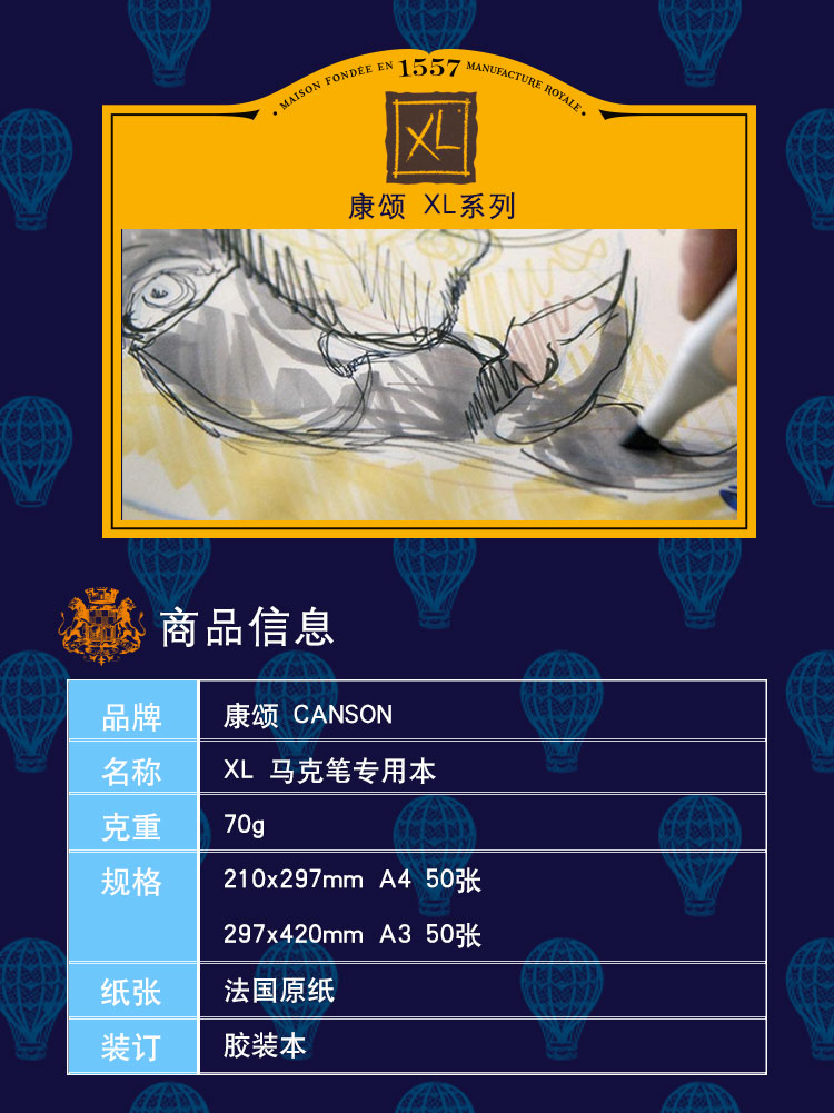 商品名称:康颂 CANSON XL系列马克笔专用本设计手绘本速写纸70GA3(297X420MM)50张