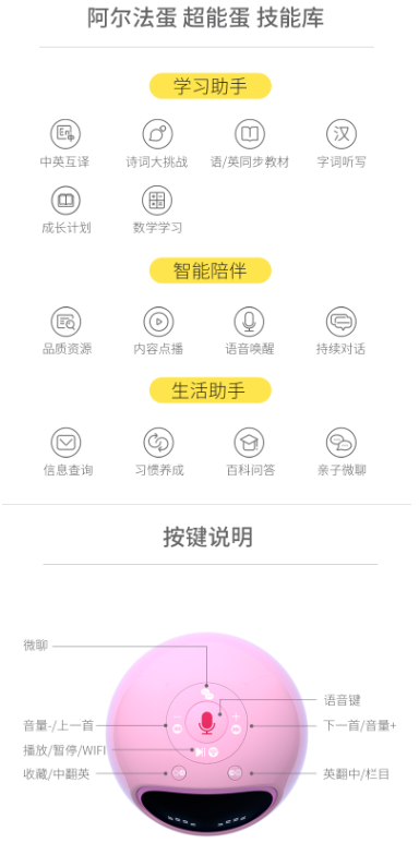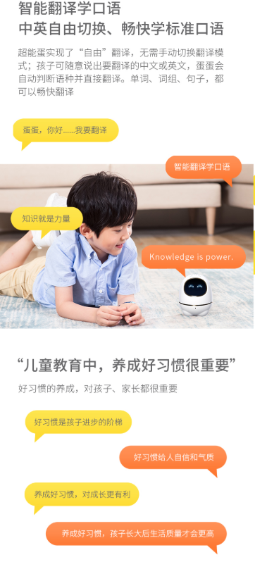 商品名称:科大讯飞 IFLYTEK 机器人阿尔法超能蛋智能机器人儿童教育陪伴益智玩具 黄色