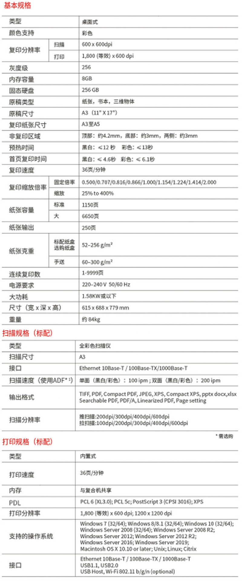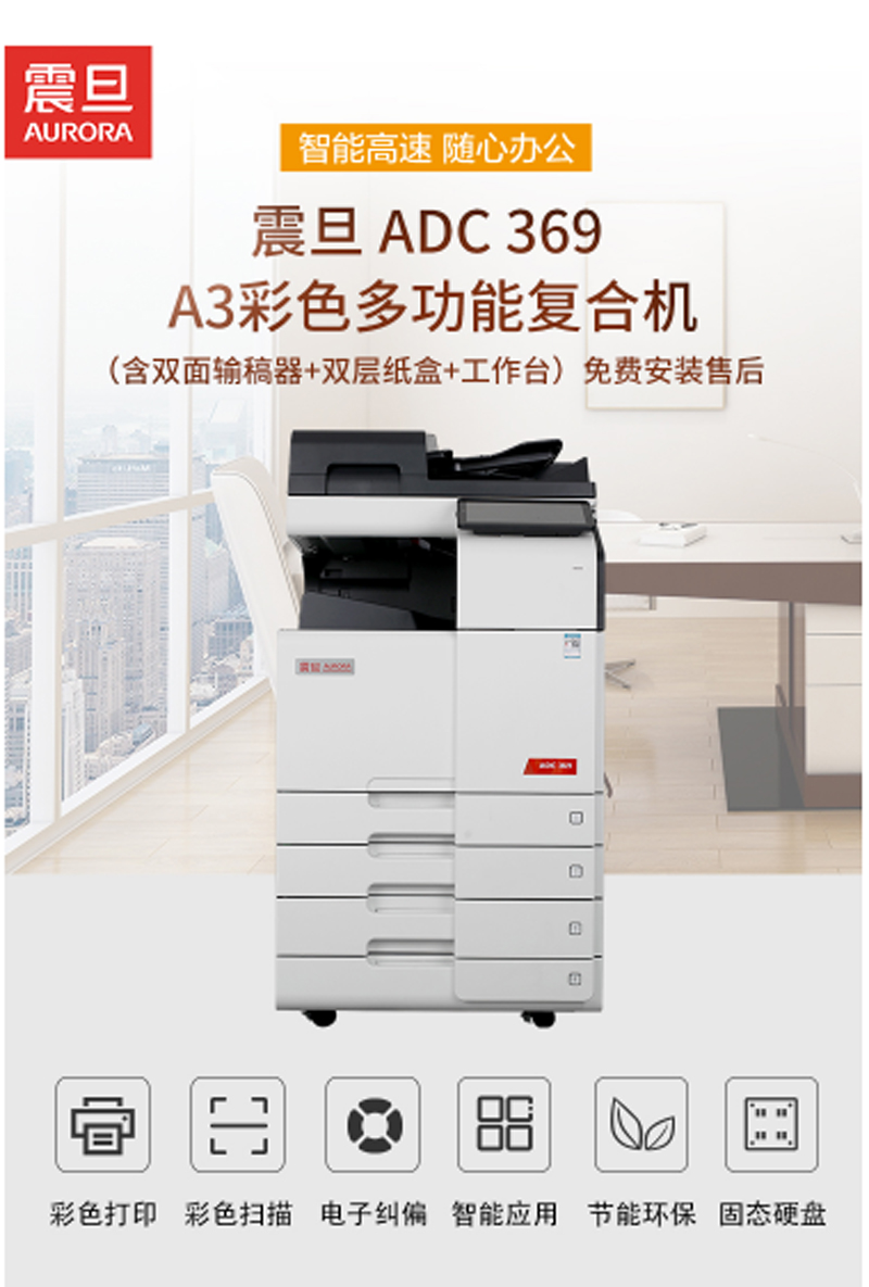 商品名称:☆ 震旦(AURORA) ADC369 (双面器/有线网络打印/1150页) 复印机 (盖板、工作台)