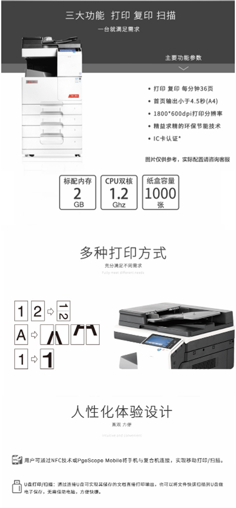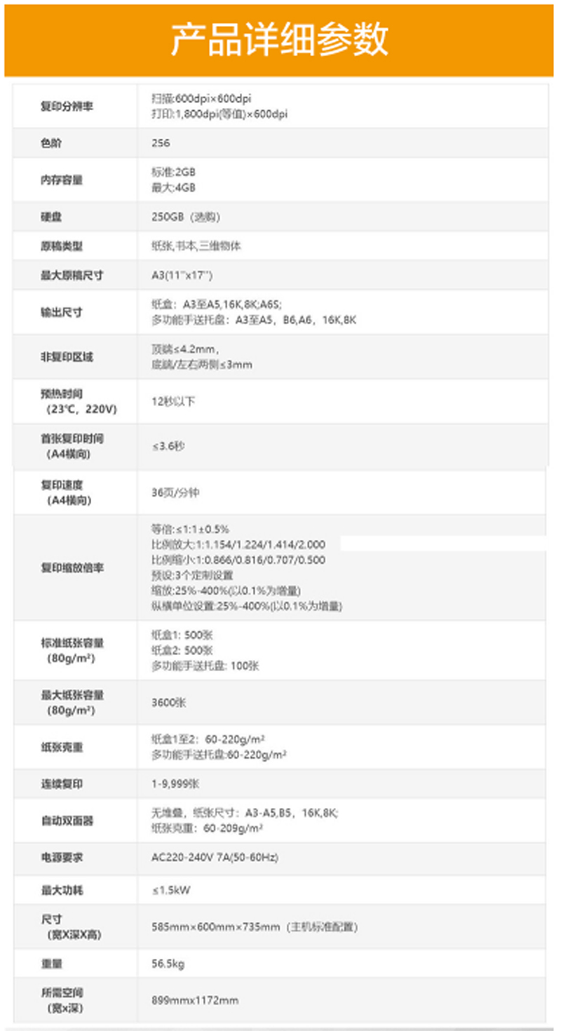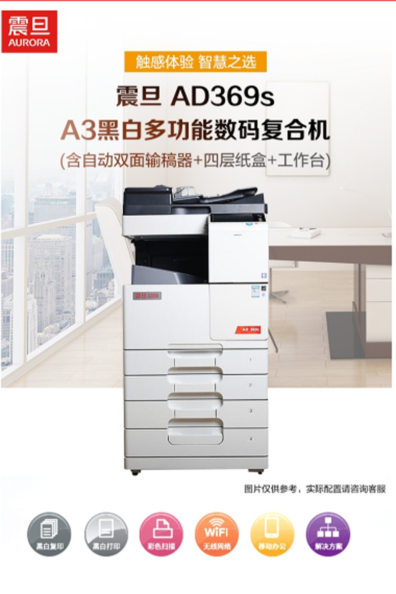 商品名称:☆震旦(AURORA) AD369S (双面器/双面自动输稿器/有线网络打印/3600页) 复印机 (鞍式装订器/工作台)