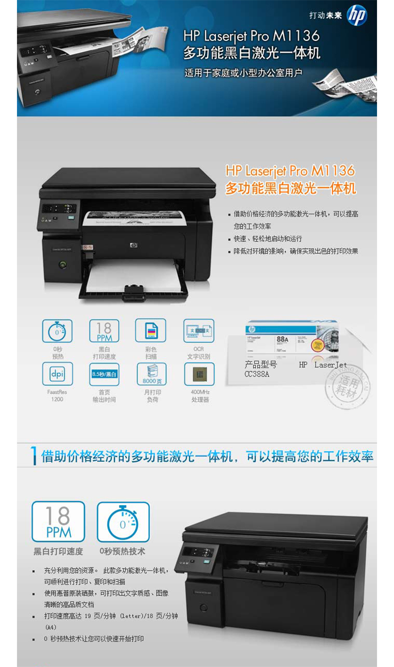 商品名称:☆惠普(HP) M1136 (150页) 多功能一体机