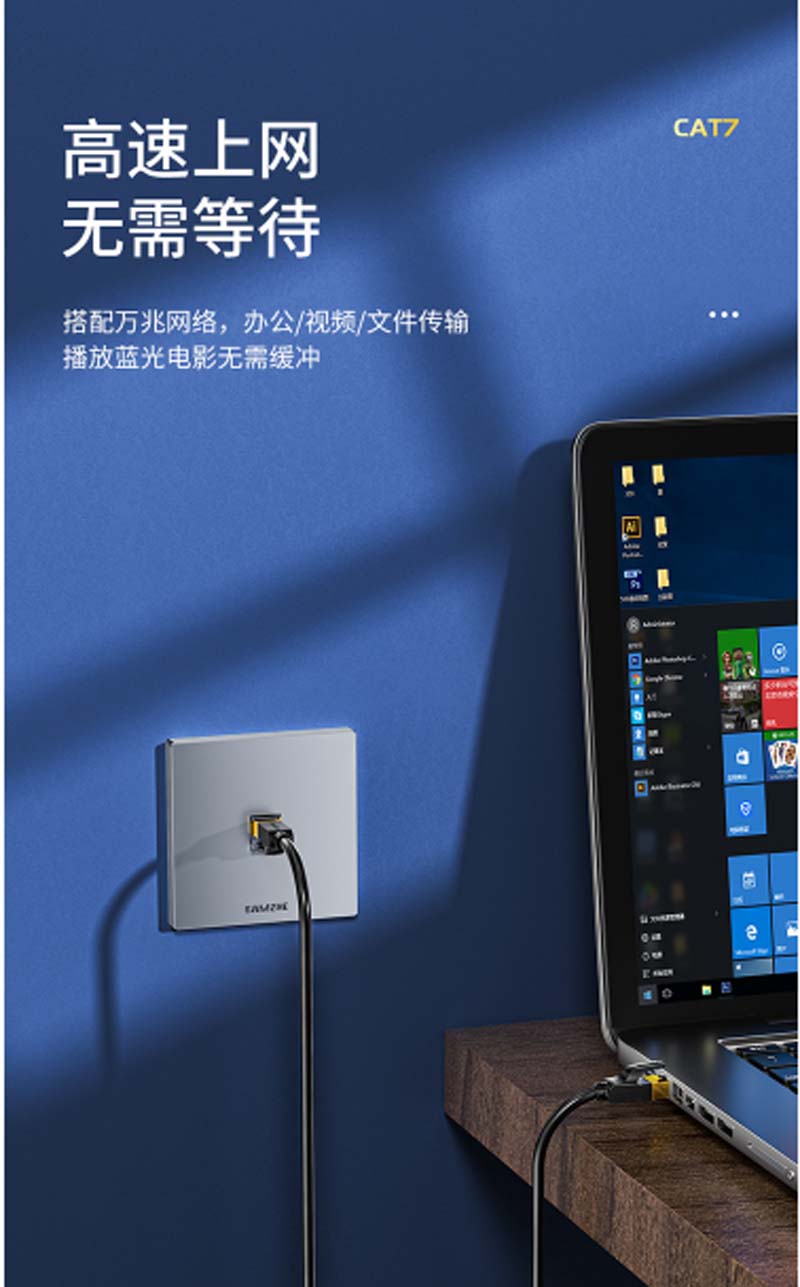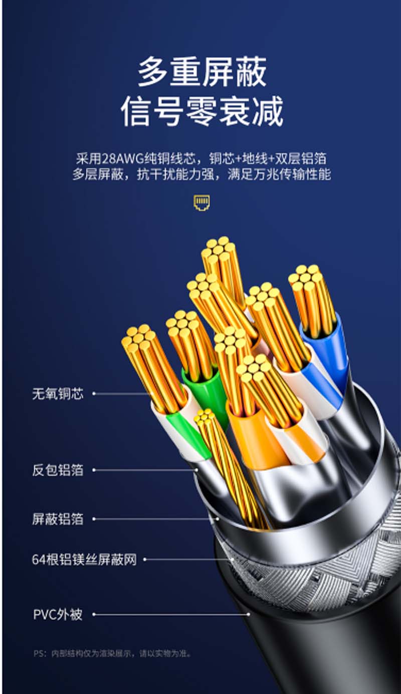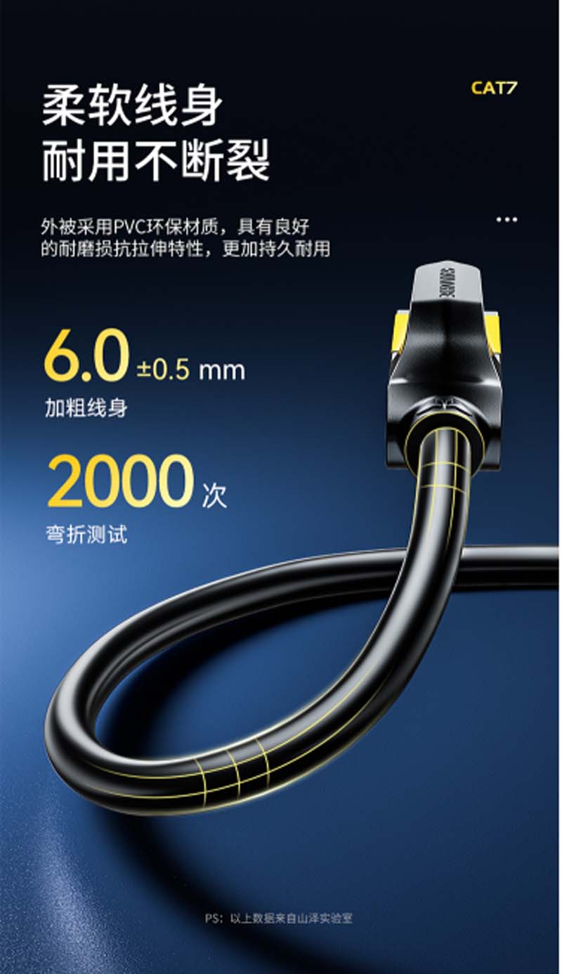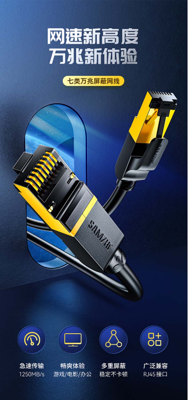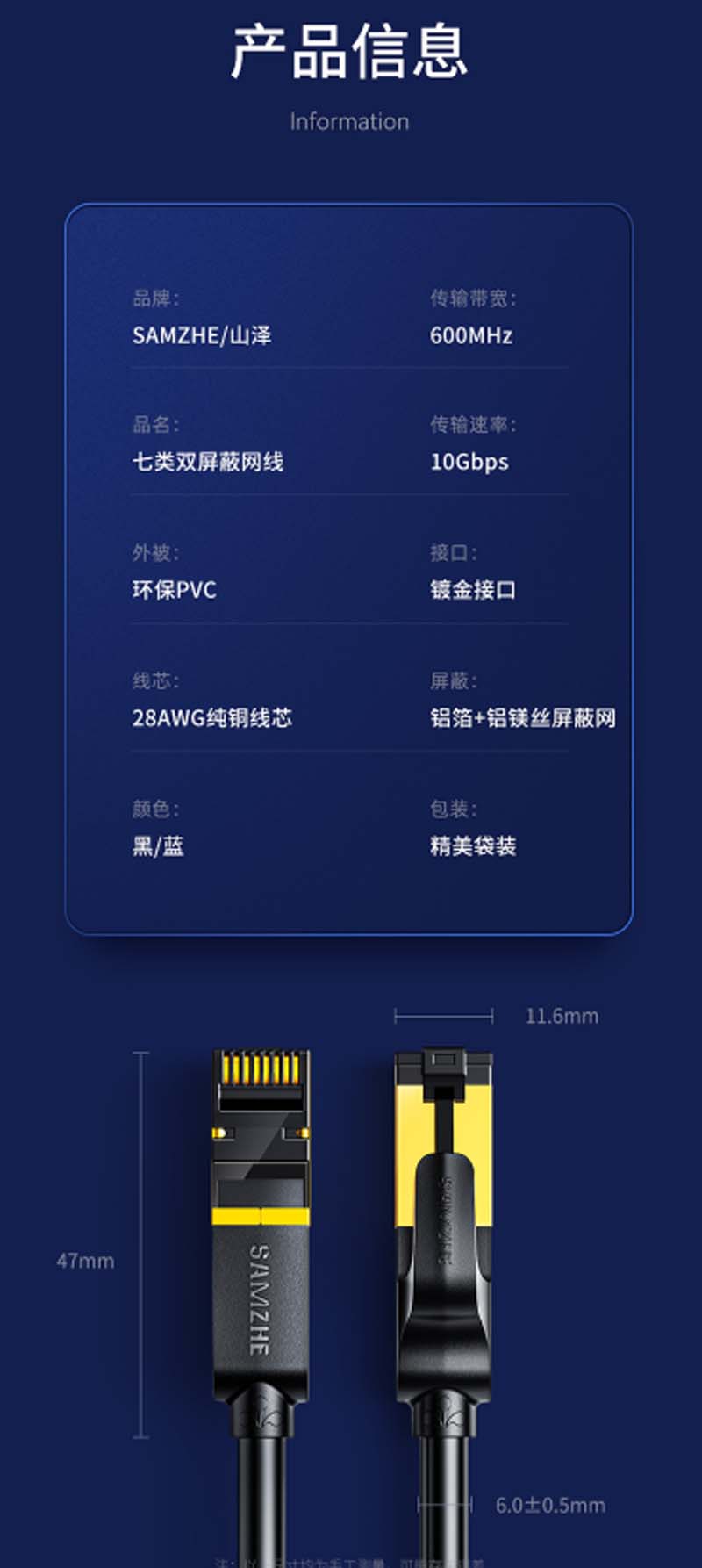 商品名称:☆山泽 SAMZHE CAT-705L 工程级七类CAT7类纯铜镀金双屏蔽超高速网络跳线 成品网线 蓝色5米