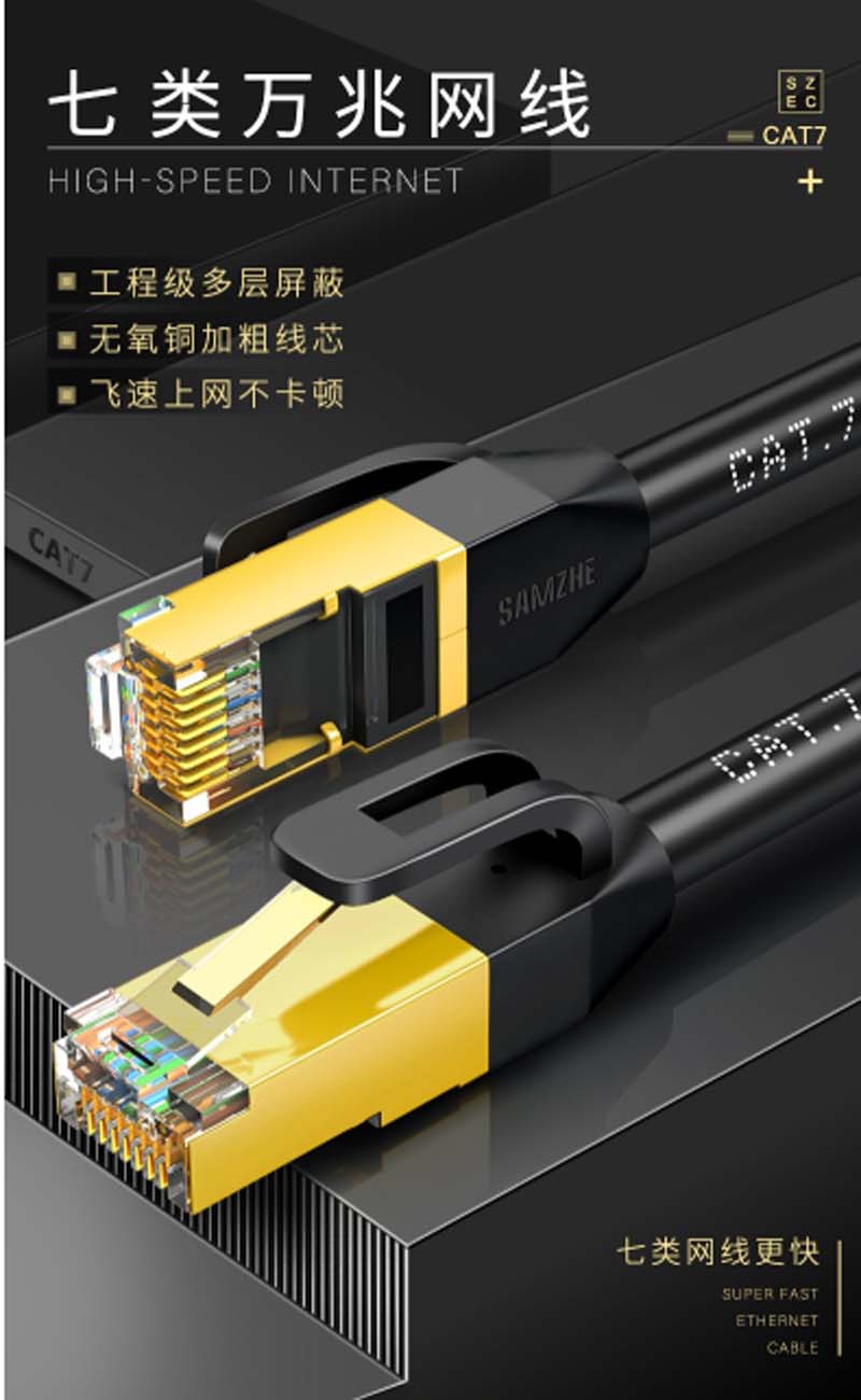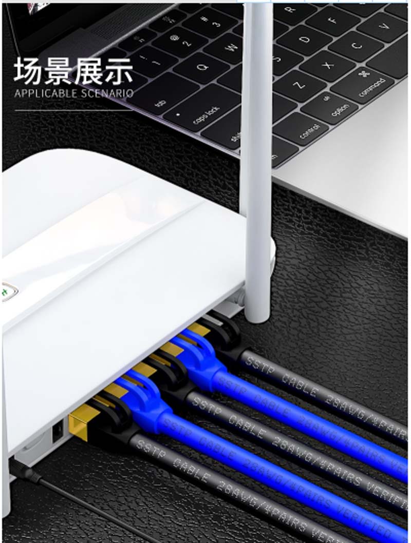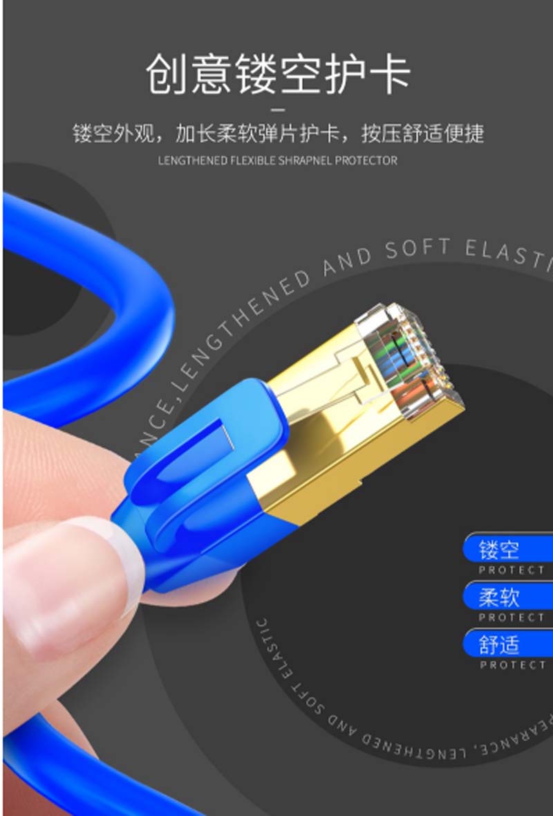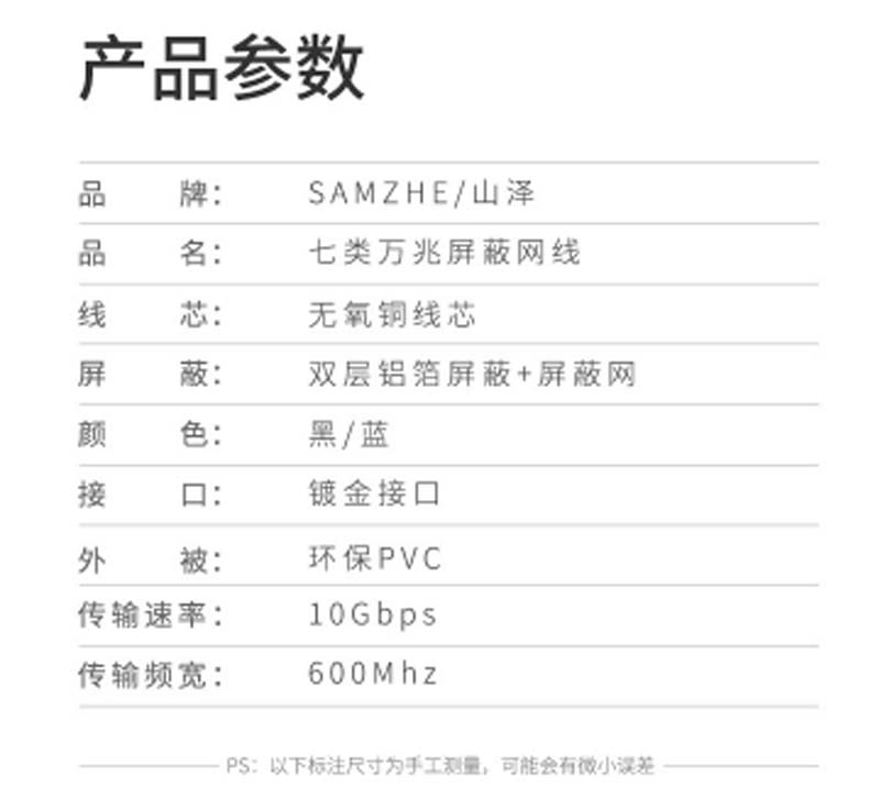 商品名称:☆山泽 SAMZHE CAT-720L 工程级七类CAT7类纯铜镀金双屏蔽超高速网络跳线 成品网线 蓝色20米