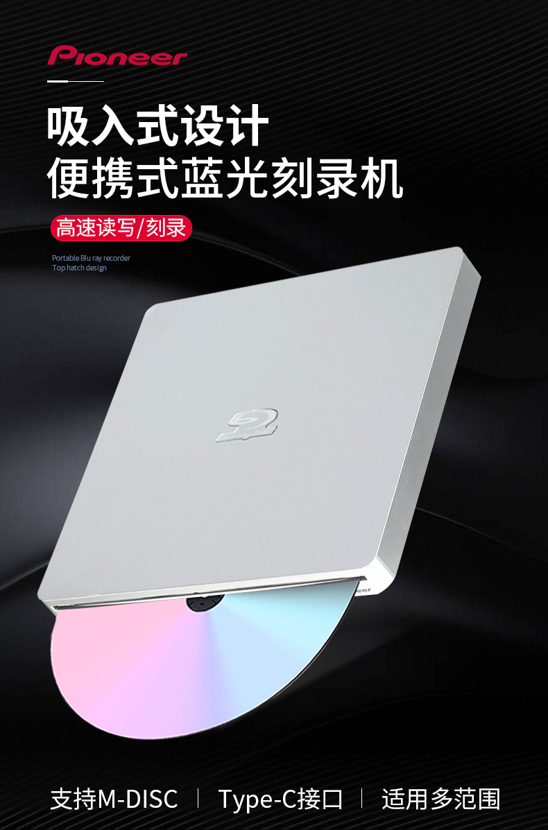 ☆先锋 PIONEER BDR-XS07CS 6X蓝光刻录机 支持BD/DVD/CD读写/兼容WINDOWS/MAC双系统