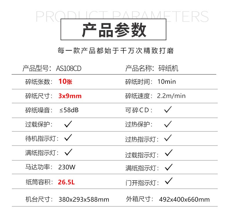 商品名称:☆震旦(AURORA) AS108CD (3×9MM) 碎纸机