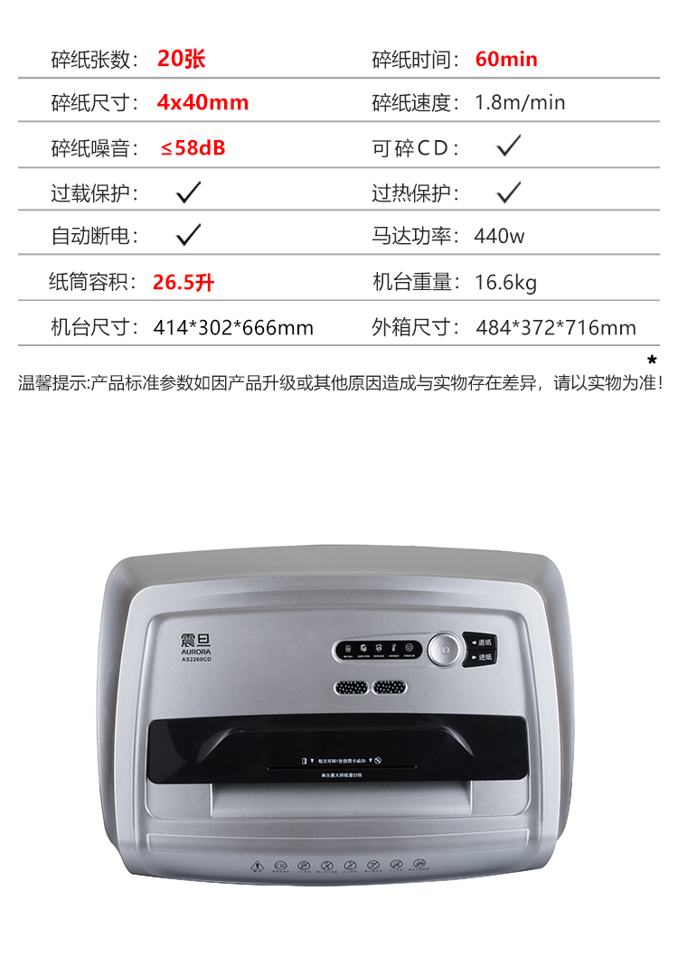 商品名称:☆震旦(AURORA) AS2060CD (4×40MM) 碎纸机