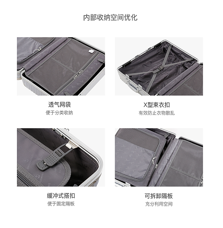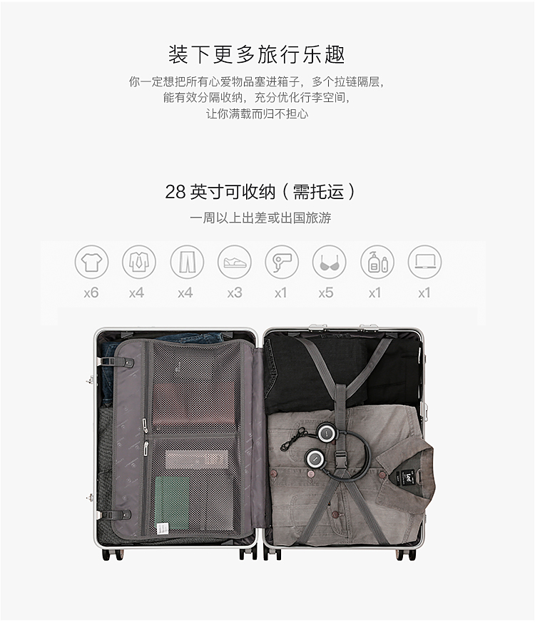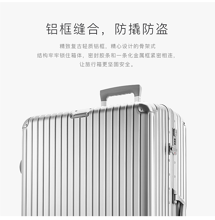 商品名称:瑞动 铝框拉杆箱28英寸密码锁行李箱 奢华银 5093