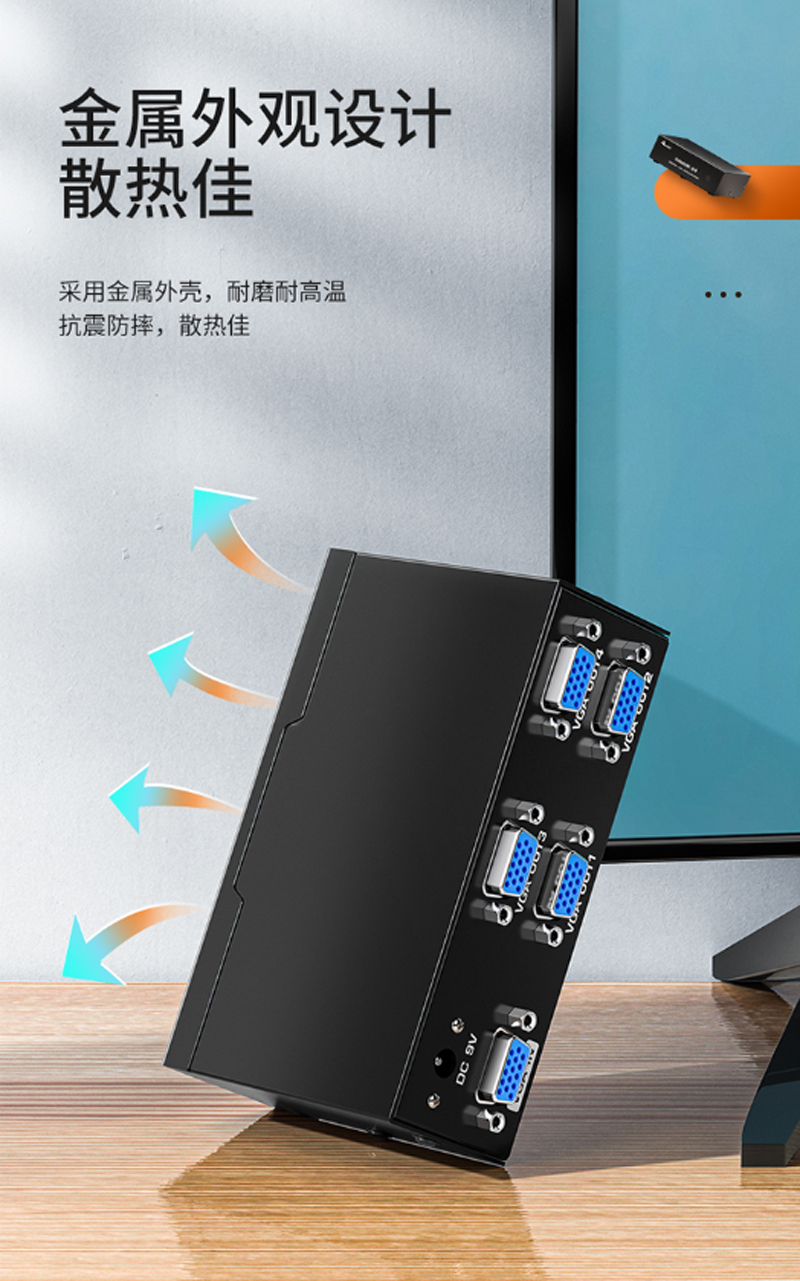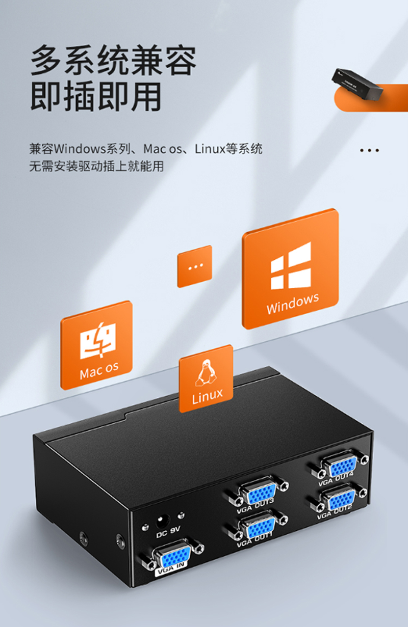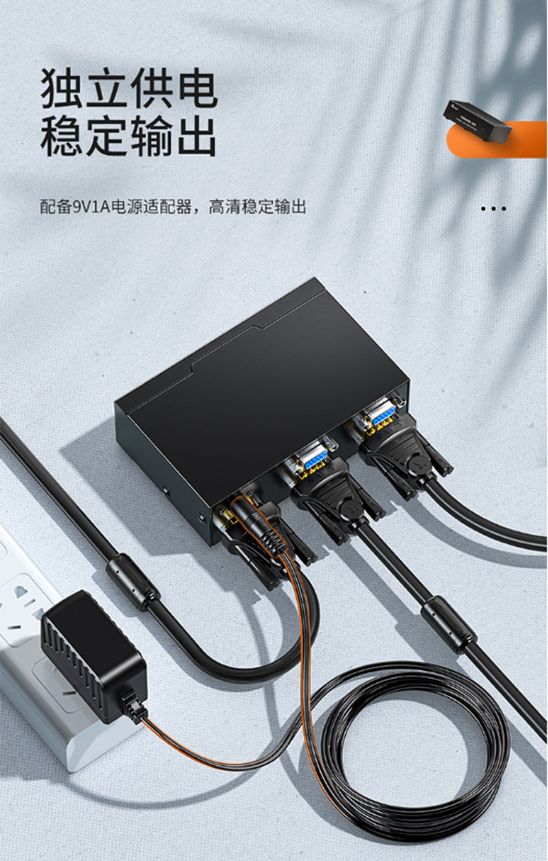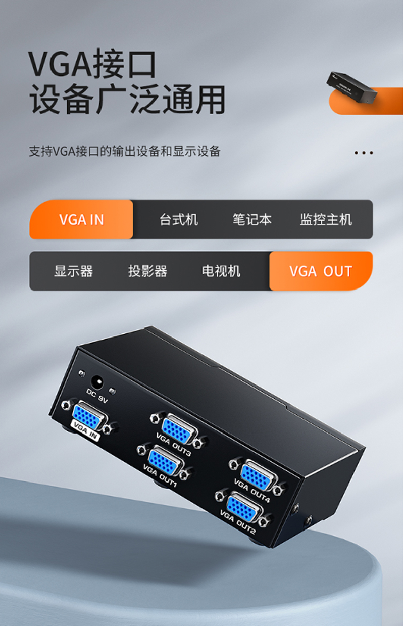 商品名称:☆山泽 SAMZHE VGA分配器4口 250MHZ 一进四出高清视频分屏器 一分四电脑电视1分4/1拖4/分频器 HV-804W