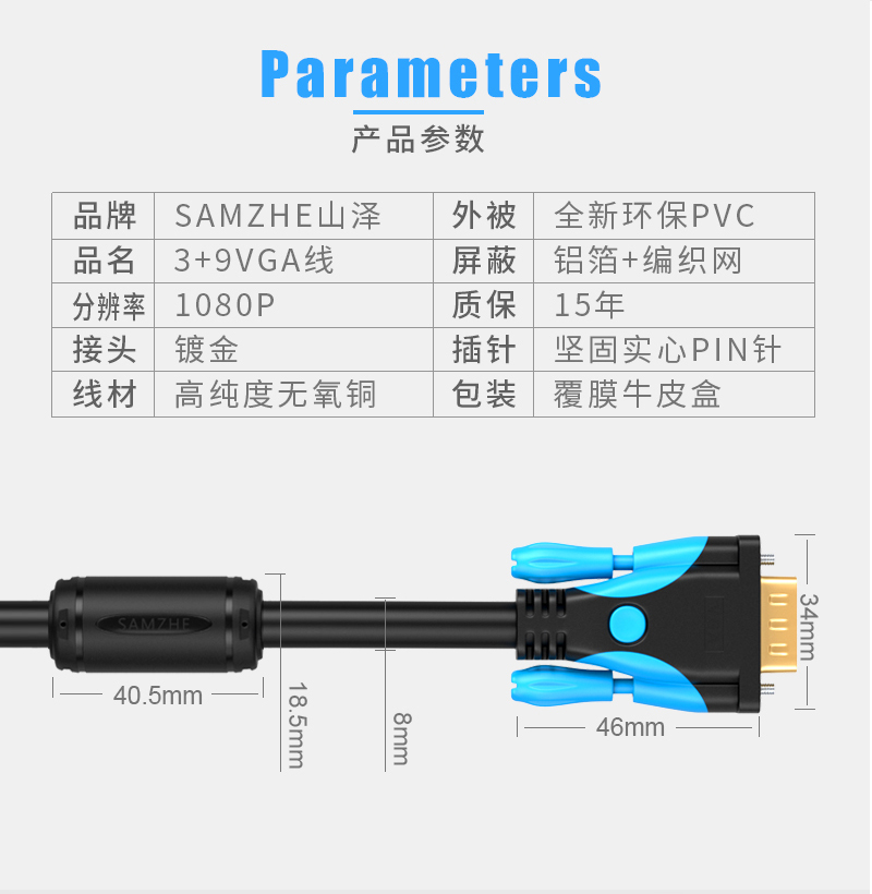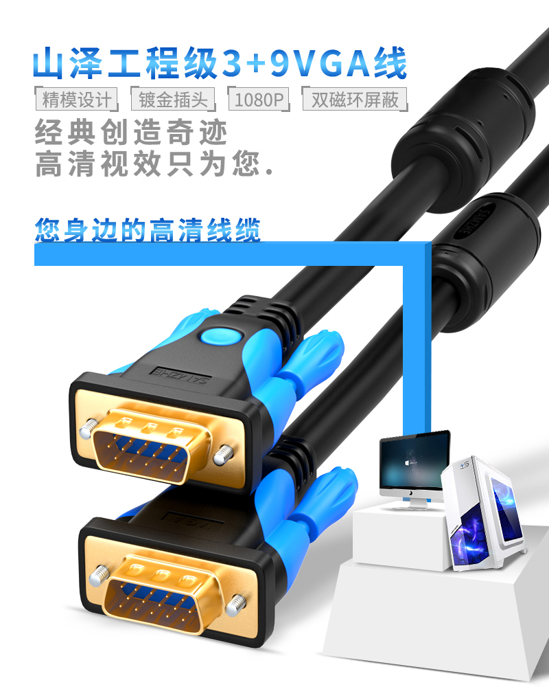 商品名称:☆山泽 SAMZHE VGA线高清双磁环 VGA3+9线芯针/针显示器视频线数据信号线 10米 GM-9100