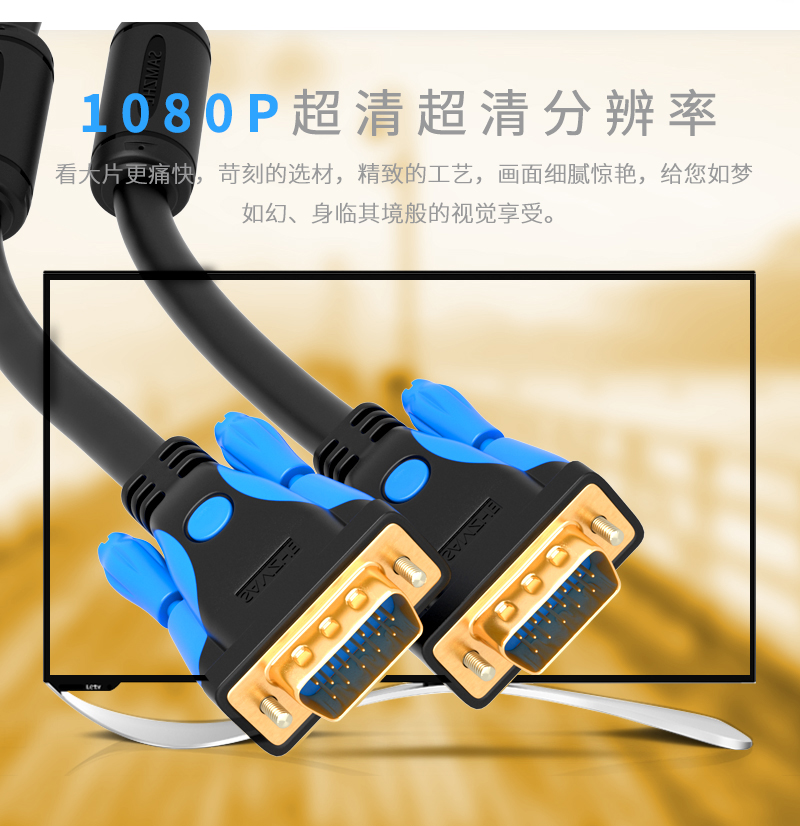 ☆山泽 SAMZHE VGA线高清双磁环 VGA3+9线芯针/针显示器视频线数据信号线 10米 GM-9100