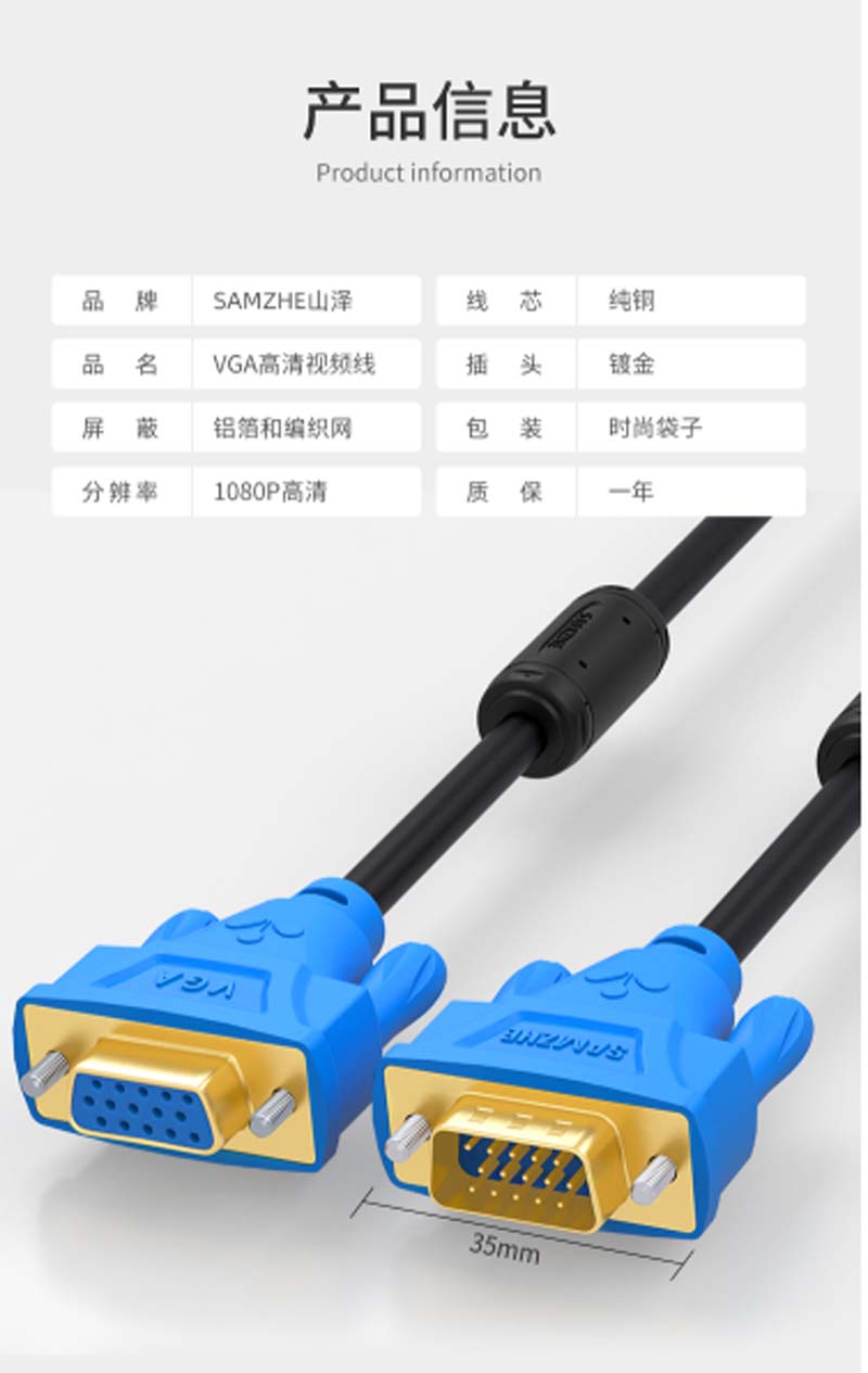 商品名称:☆山泽 SAMZHE VGA延长线公对母高清双磁环蓝头VGA3+6线芯针/孔10米 电脑投影仪显示器视频线VF-1100