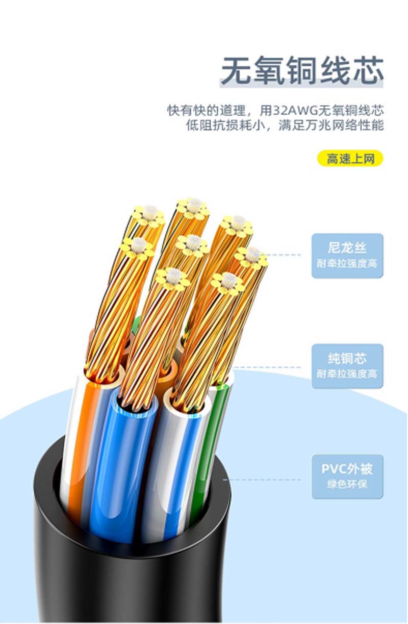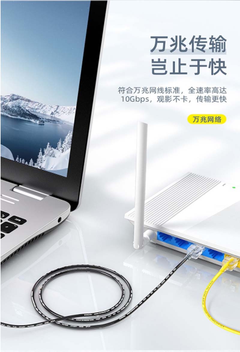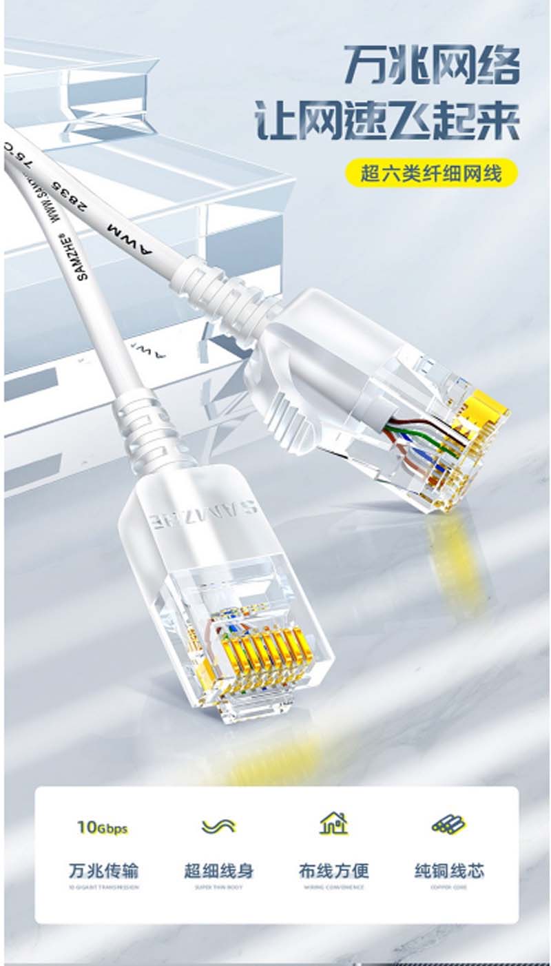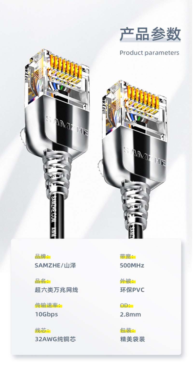 商品名称:☆山泽 SAMZHE 超六类细径CAT6A高纯无氧铜网络跳线 8芯双绞高速超6类RJ45网络线 0.5米黑色SZH-6005