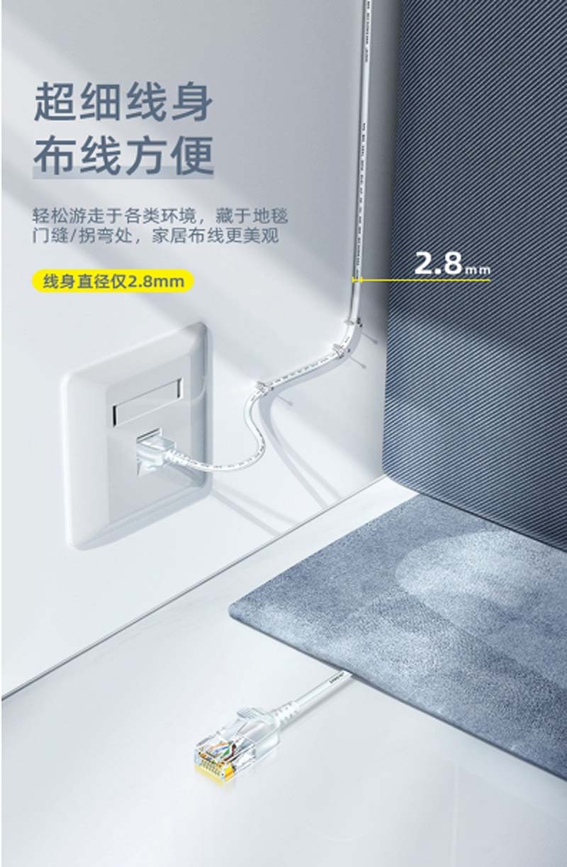 ☆山泽 SAMZHE 超六类细径CAT6A高纯无氧铜网络跳线 8芯双绞高速超6类RJ45网络线 0.5米黑色SZH-6005